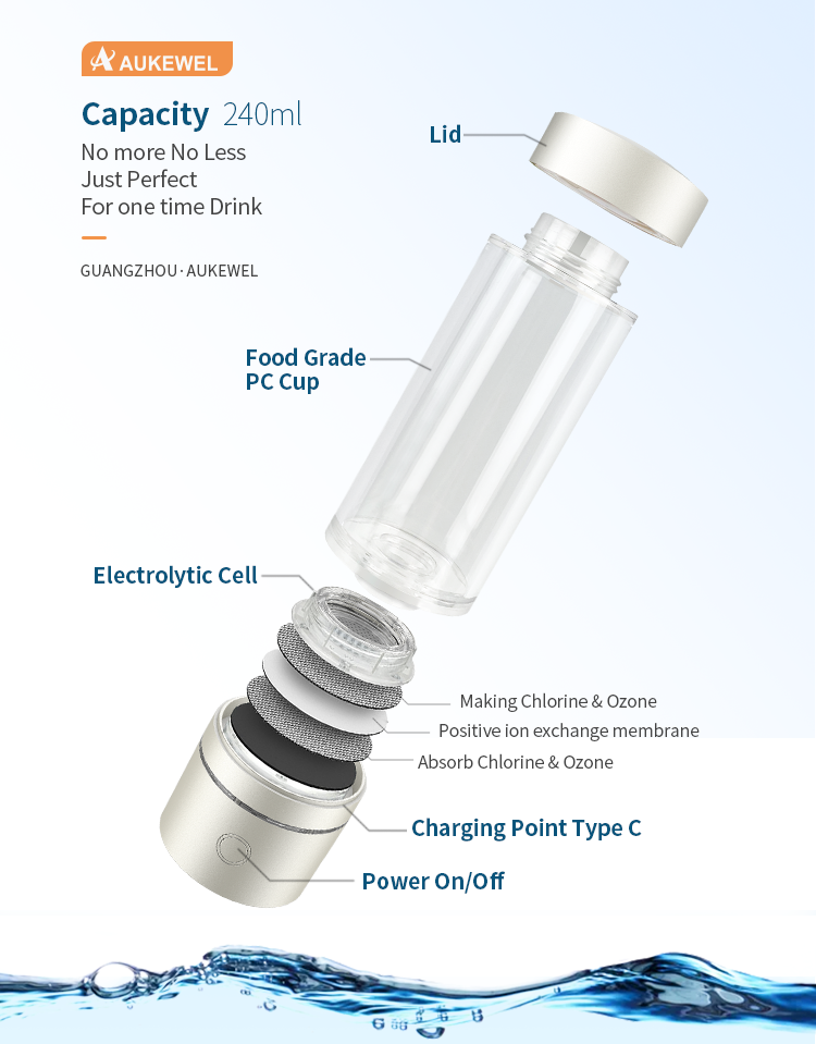 Aukewel 230ML New Design Nano Hydrogen Water Cup Generator and Filter ABS-FQ-02