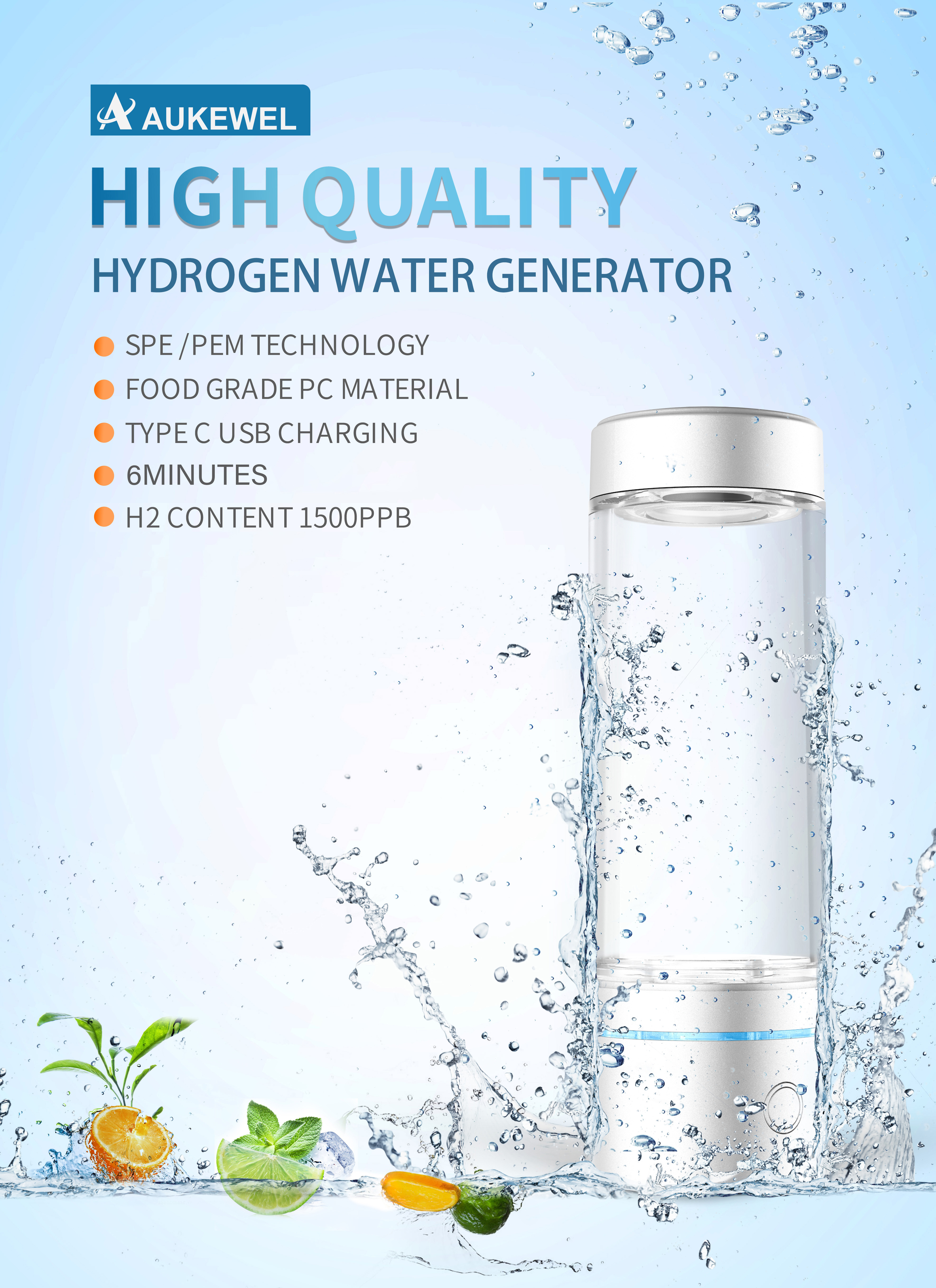 Why we should use AUKEWEL Hydrogen Water Generator? *Certified - AUKEWEL brand Hydrogen water generator is with CE, FCC certificate. *The world Best Technology - Two chamber 7-Layers system with Platinum PEM ( proton exchanging membrane ) and Platinum Titanium electrode. *Incomparable Performance - AUKEWEL brand hydrogen water generator, shows the most powerful performance, making hydrogen of 1500ppb in 6 MINUTES. *Most suitable Capacity - 240ML is most suitable water capacity for human one time drink in various occasion. *Best Design - Extremely portable, Drink for health Anytime Anywhere!