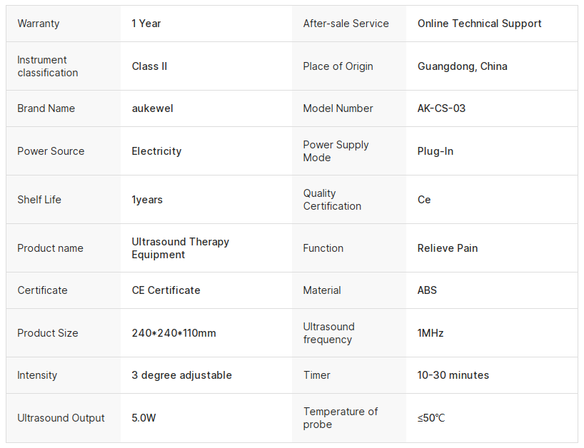 WHAT CAN ULTRASOUND THERAPY BE USED FOR? RELIEVE BODY PAINS PRODUCT FEATURE 1. Simple, protable and flexible 2. 1MHz frequency output, safe and stable. 3. Three degree intensity: Low, Medium, High. 4. Timer: 10-30 minutes 5. Intelligent temperature control, the maximum temperature is 45℃ 6. Humanized safety design, anti overheating and anti over-current protection.